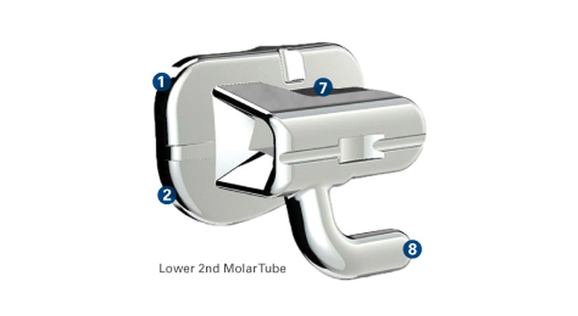 8.“T” hook on lower first molar for elastic retention and patient comfort